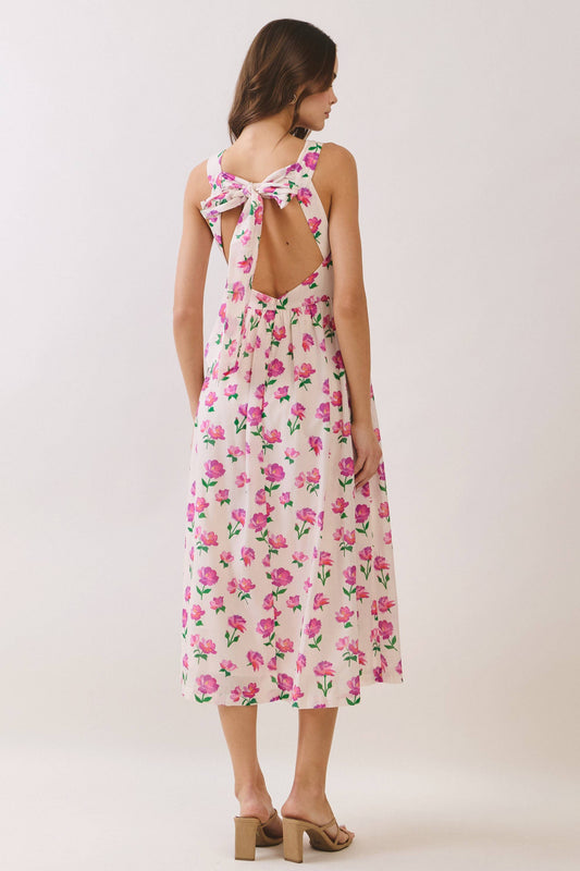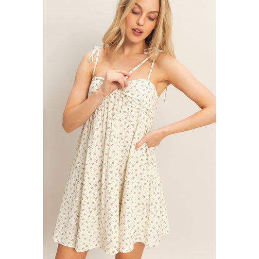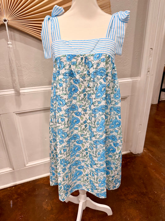 Floral Print Striped Patchwork Bow Knot Straps Mini Dress