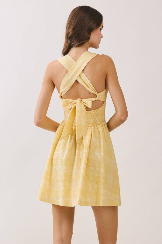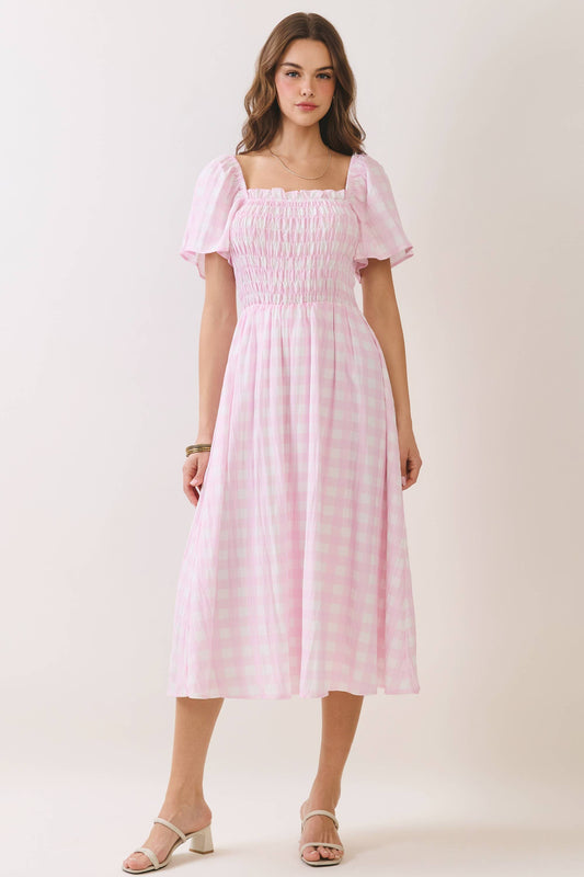 Knot Back Ruffle Short Sleeve Gingham Maxi Dress