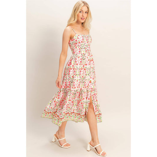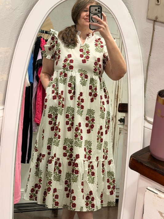 Floral Short Bubble Sleeve Tiered Maxi Dress