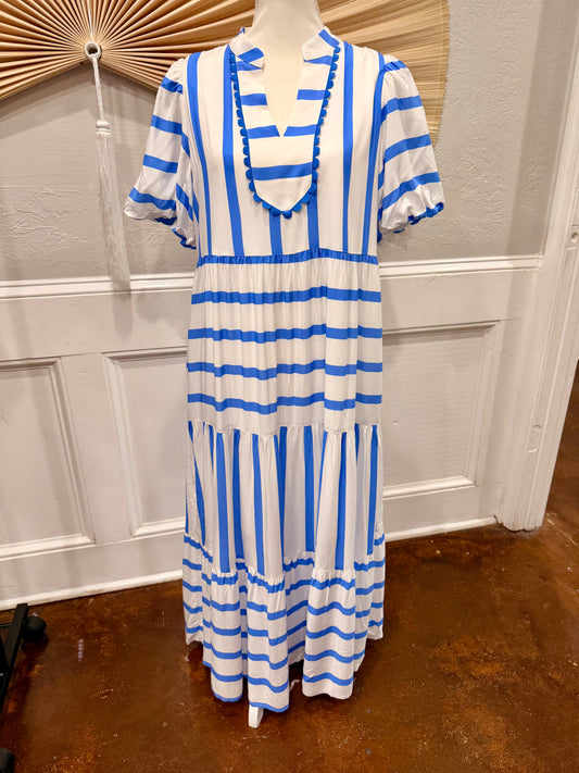Stripe Ricrac Trim Vacation Dress