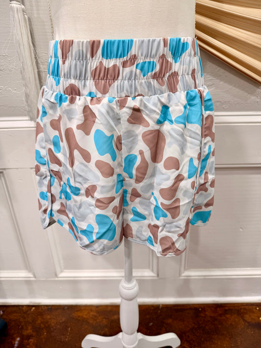 Camouflage Print Shirred High Waist Athletic Shorts