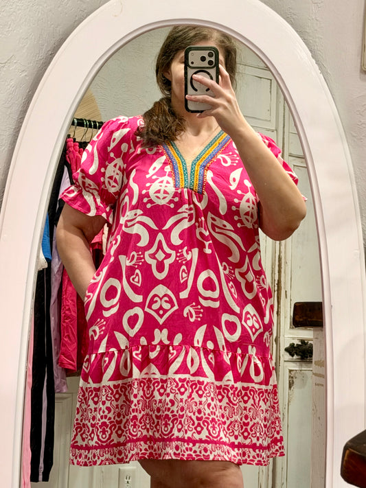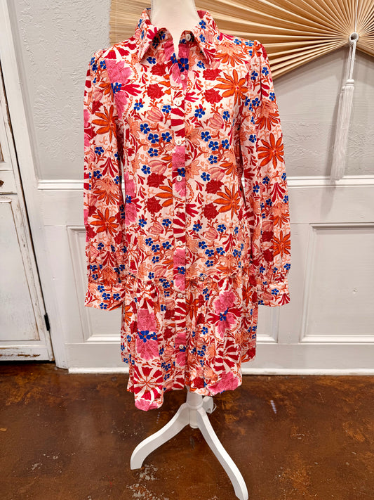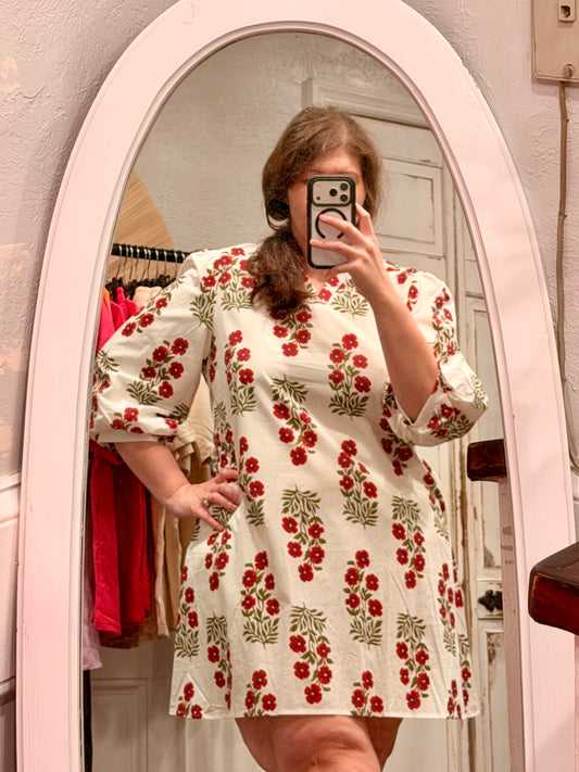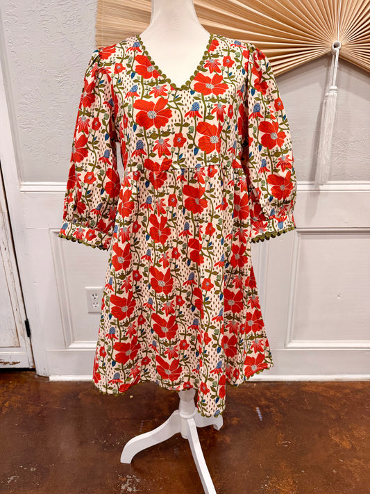 Floral Print Contrast Bubble Sleeve Mini Dress