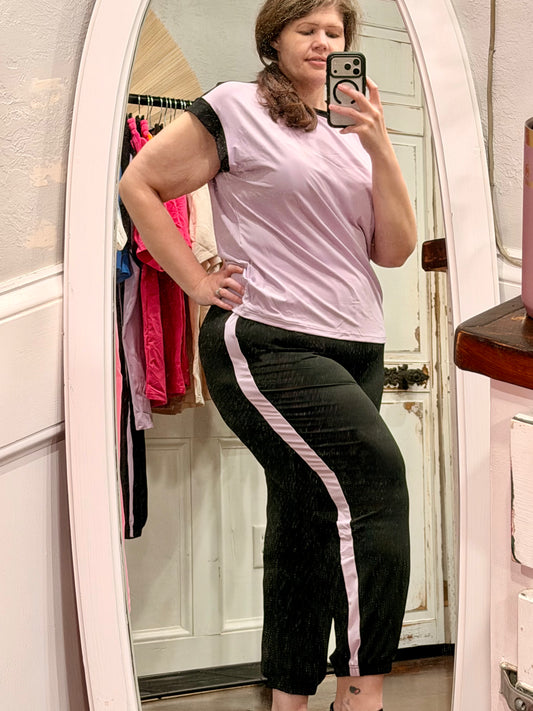 Color Block Trim Twotone Contrasted Top and Pants Set