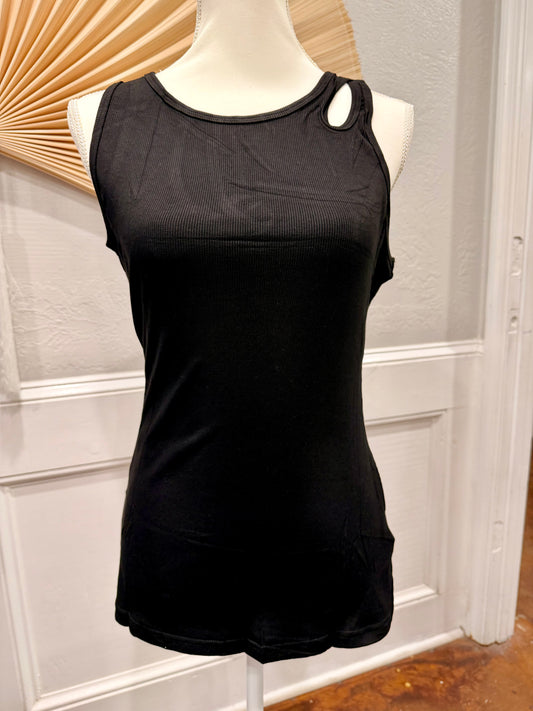 Ribbed Keyhole Casual Tank Top