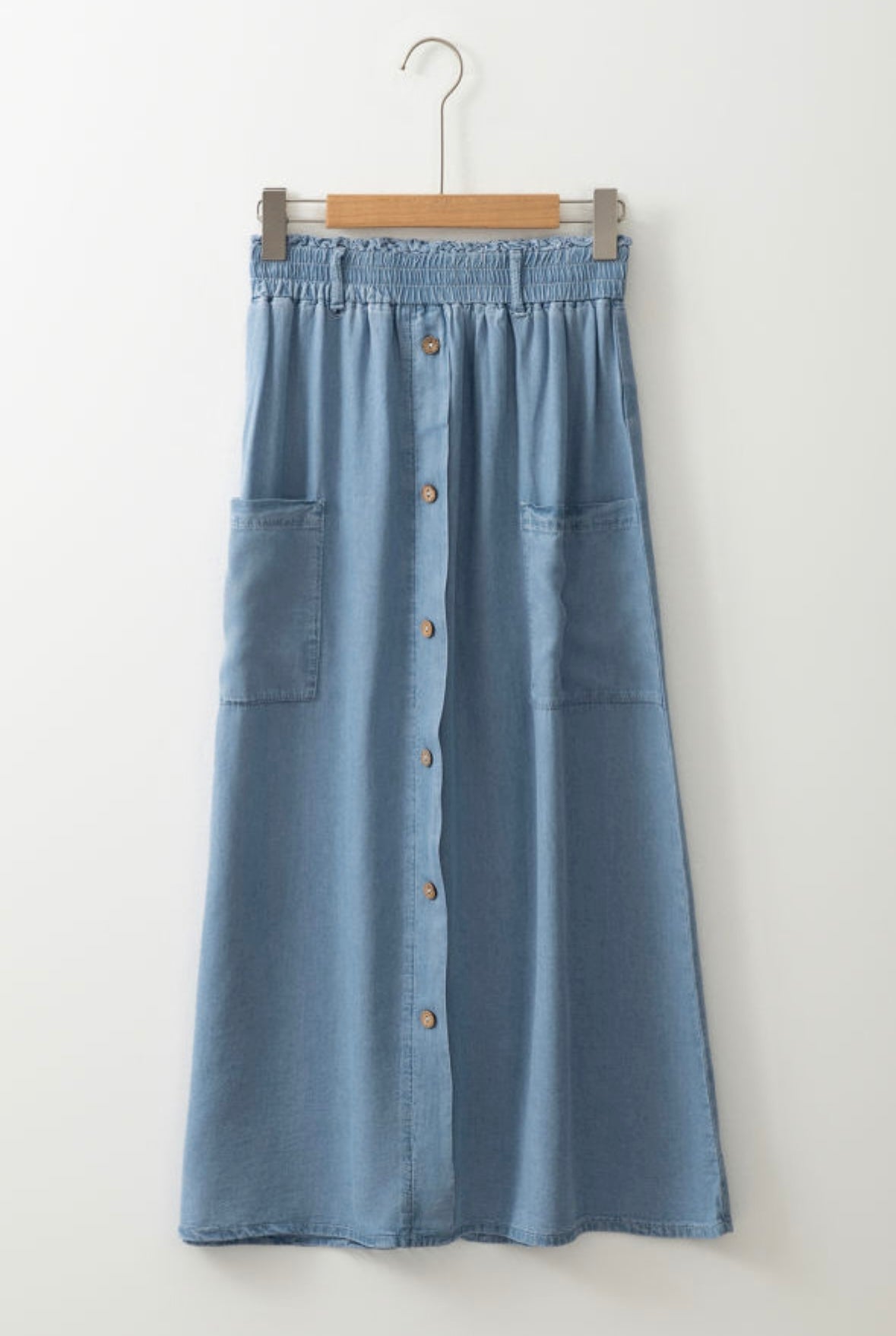 Buttoned Front High Waist Side Pockets Denim Maxi Skirt