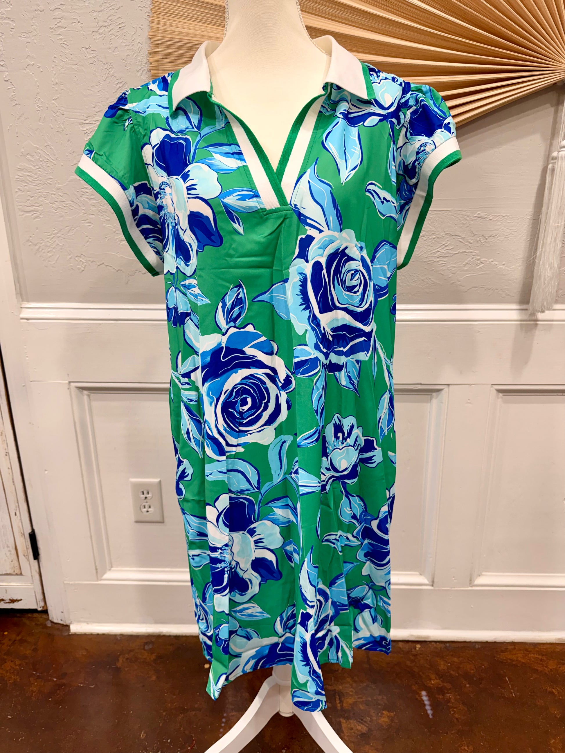 Contrast Floral Print Collared Sleeve Dress