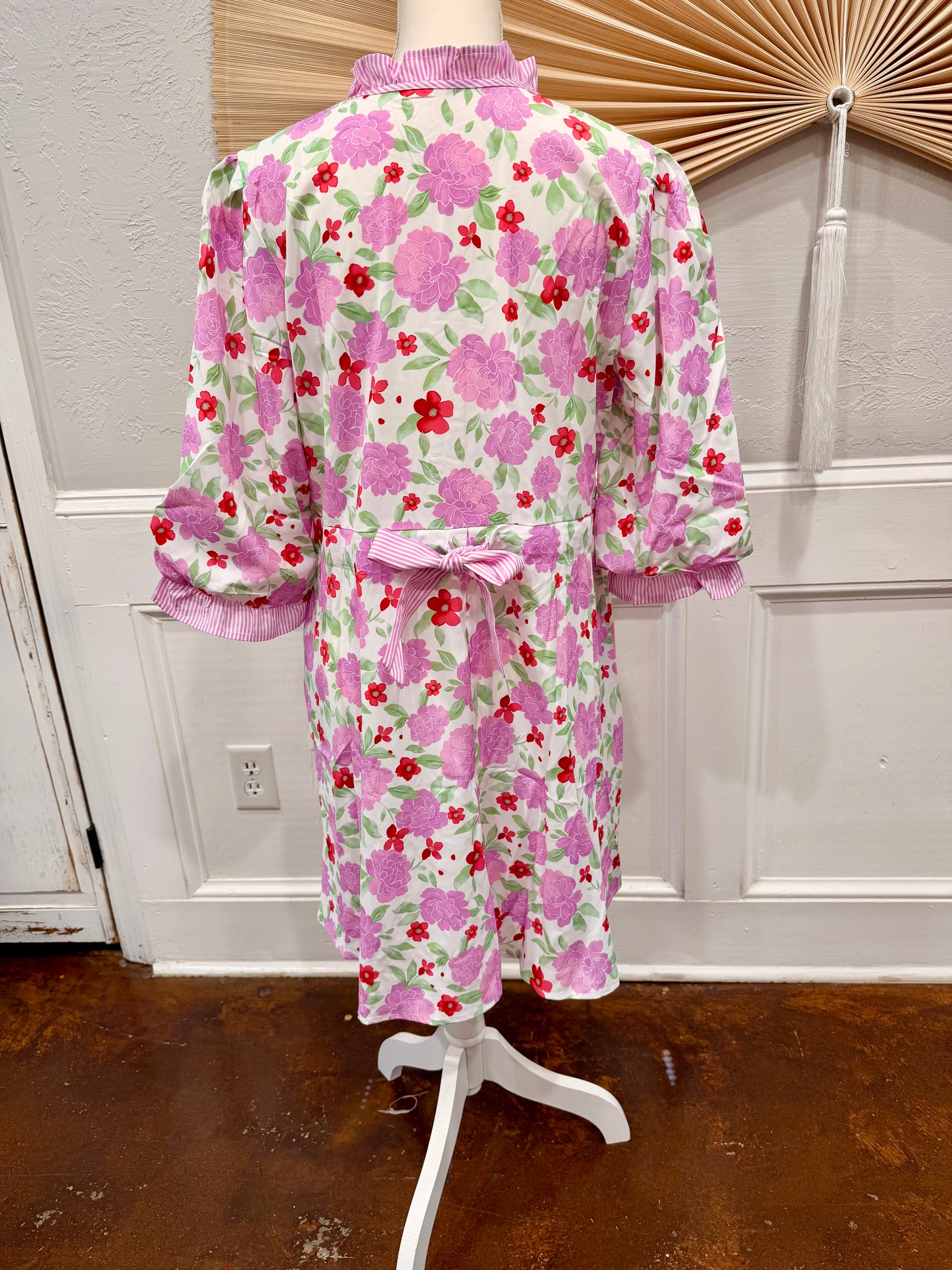 Floral Print Striped Trim Mini Dress