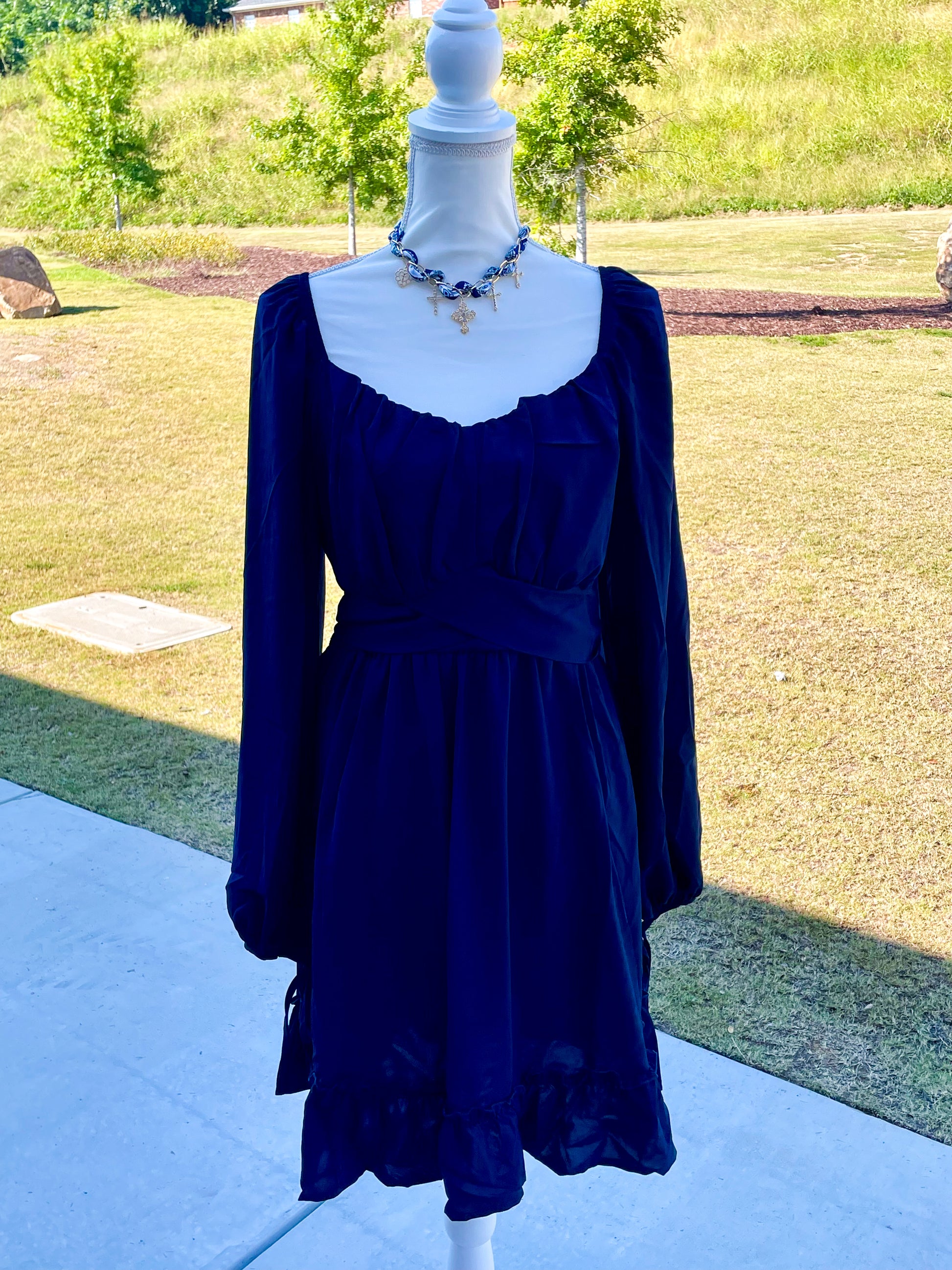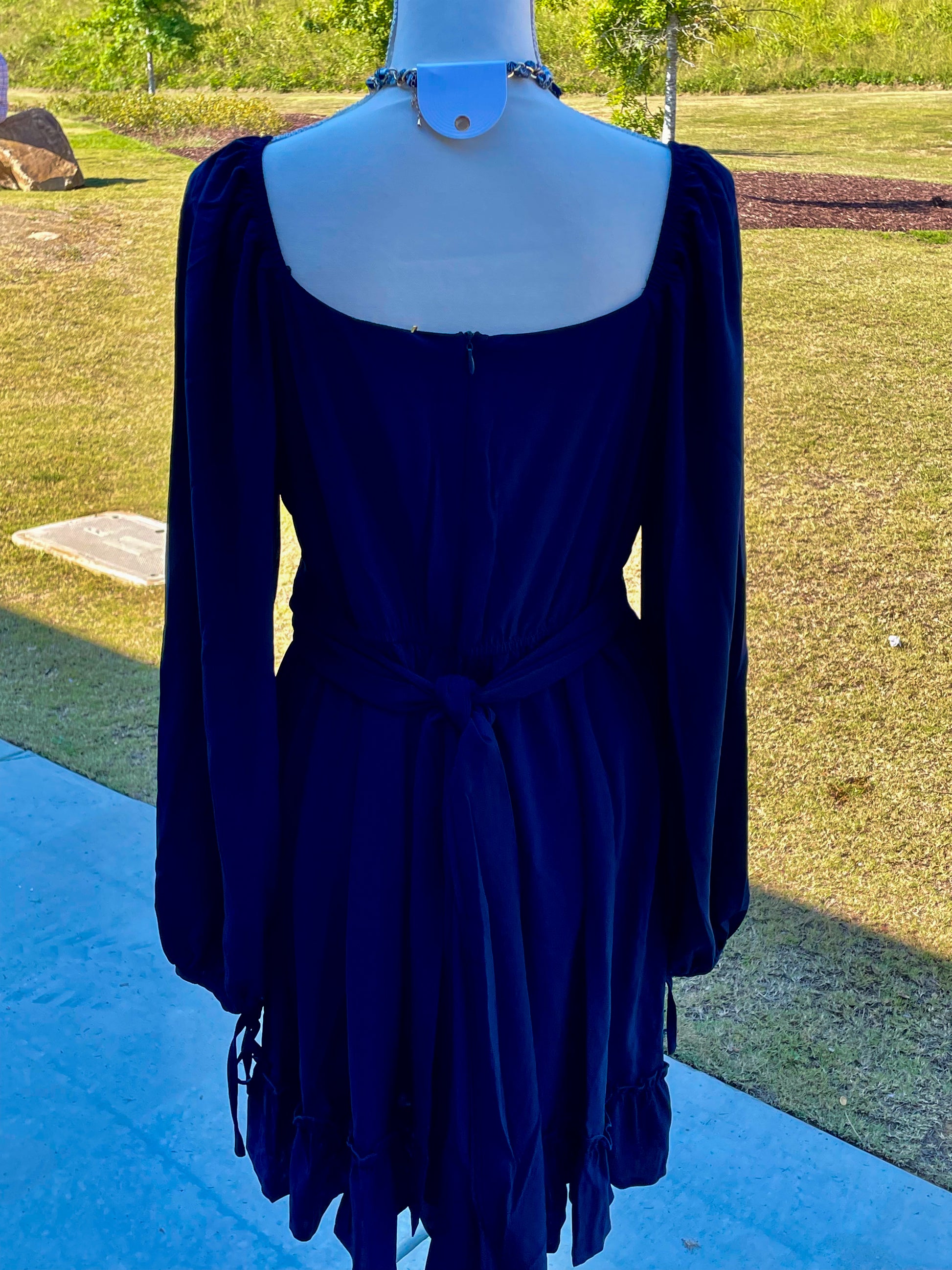 This square neck, high waisted, ruffled designed mini dress pairs perfectly with high heels and boots. 100% Polyester